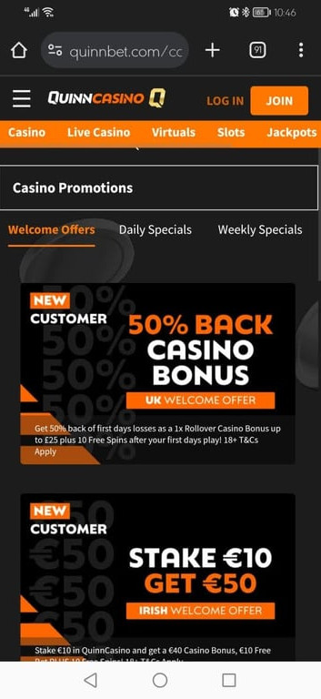 There's also 'Monday Bonus Reload’, plus a number of week-long specials, such as 10% back on weekly losses. All in all, QuinnBet Casino has one of the most varied and generous ranges of casino welcome bonuses on the market.